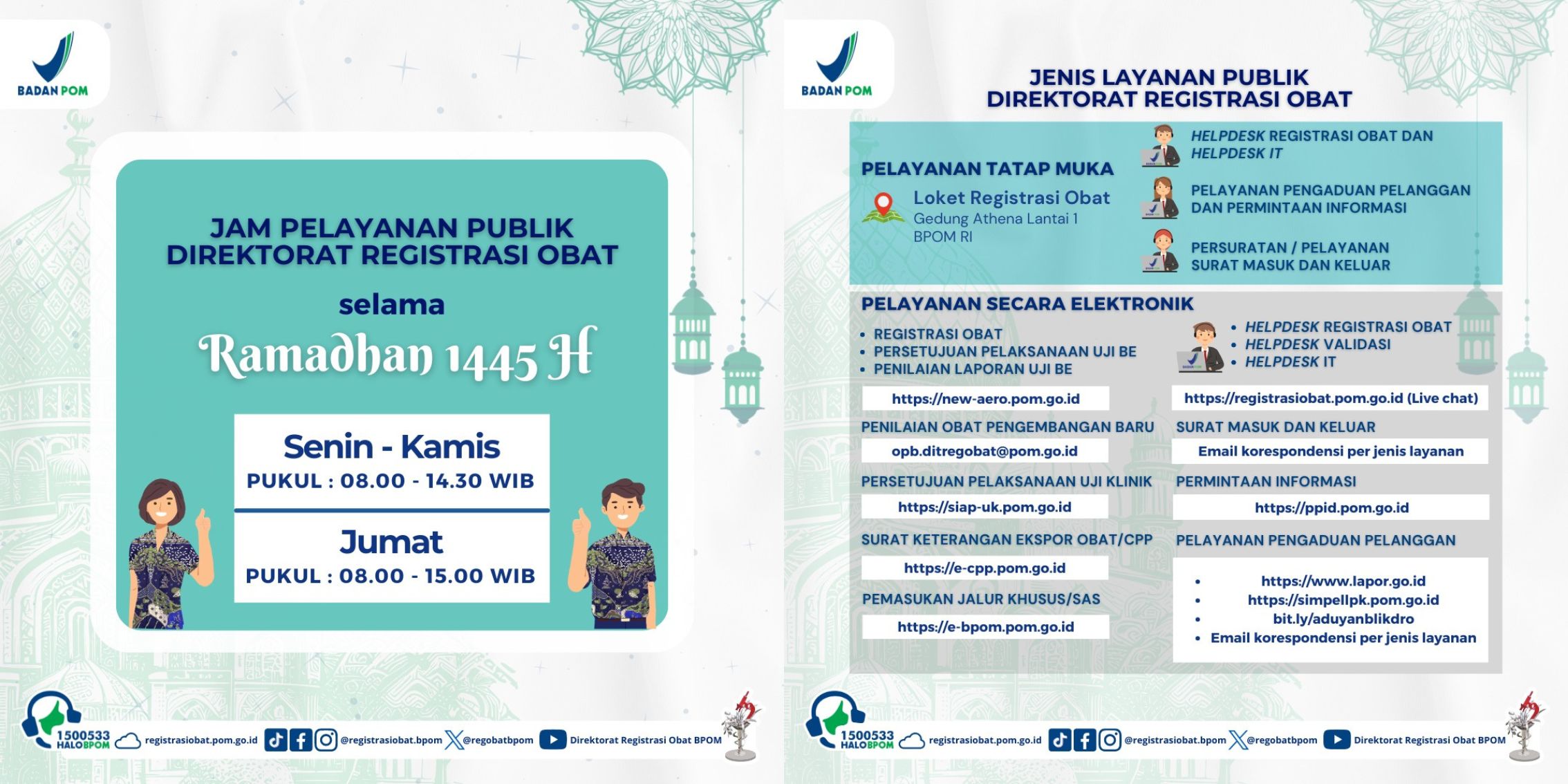 JAM PELAYANAN PUBLIK DIREKTORAT REGISTRASI OBAT SELAMA RAMADHAN 1445H